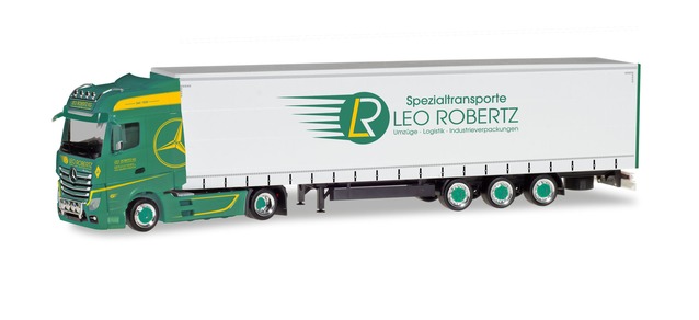 "Im Bereich Umzüge sowie Spezial- und auch Sondertransporte ist das Unternehmen Leo Robertz seit 99 Jahren tätig. Herpa bringt zunächst einen Mercedes-Benz Actros Lowliner-Sattelzug heraus, der mit Chromteilen und der besonderen Veredlung zu einem besonderen Sammlerhighlight gestaltet wird."