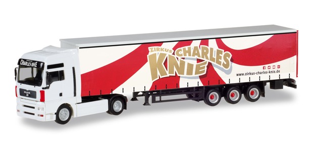 Herpa 310154 MAN TGA XXL Gardinenplanensattelzug "Zirkus Charles Knie" 1:87 Spur HO