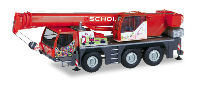 "Mit Kindermotiven hat Scholpp einige seiner Liebherr Krane gestaltet. Herpa wird in einer einmaligen Auflage von nur 500 Stück eines dieser Fahrzeuge als Miniaturmodell umsetzen."