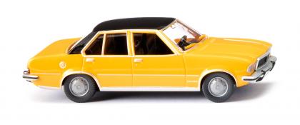 "So sportlich konnte eine Rüsselsheimer Limousine sein - Leuchtender Lack war ein Muss! Das schon grelle Verkehrsgelb war zu Beginn der siebziger Jahre ein Opel-Bestseller. Auch beim Commodore B, der angesichts seines Limousinen-Charakters noch mit dem obligatorischen schwarzen Vinyl-Dach aufgewertet wurde. Damals galt der Commodore B als nun wirklich ausgewachsene Sportlimousine für all jene, die es bequem und lauffreudig zugleich wünschten. So miniaturisiert WIKING die sportliche Variante des Opel Rekord D gewohnt filigran und vorbildgerecht. Der Commodore B ist mit dem Rekord D identisch, lediglich gestalterisch griffen die Rüsselsheimer Designer seinerzeit in die Trickkiste und machten dank Kühlergrill und anderer optischer Finessen daraus ein automobiles Gesamtpaket für ambitionierte Sechs-Zylinder-Freunde. Im Frühjahr 1972 vorgestellt, erwies sich der Sport-Opel wie schon sein Vorgänger in den sechziger Jahren als kultiviertes und vor allem höchst komfortables Fahrzeug jener Jahre."
