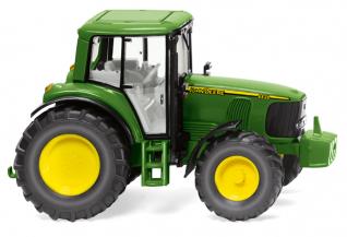 "Mannheim lässt grüßen: Der John Deere 6820 mit 135 PS - Mit dem John Deere 6820 miniaturisiert WIKING den 135 PS starken Allround-Schlepper, der inzwischen europaweite Verbreitung gefunden hat. Der Mannheimer Traktor erfreut sich wegen seiner Wendigkeit unverändert großer Beliebtheit. Bedruckungskomfort, aber vor allem Detailgravuren sowie die bauliche Ausführung von Kabine und Inneneinrichtung nutzen die Werkstoffeigenschaften des Kunststoffs vollends aus. Vor allem die transparente Kabine mit zweiteiliger Inneneinrichtung bereitet Spaß, gibt sie doch den Einblick in die Kabine frei. Dort findet sich auch der wohlgeformte Fahrersitz mit seinen seitlichen Bedienarmaturen wieder."