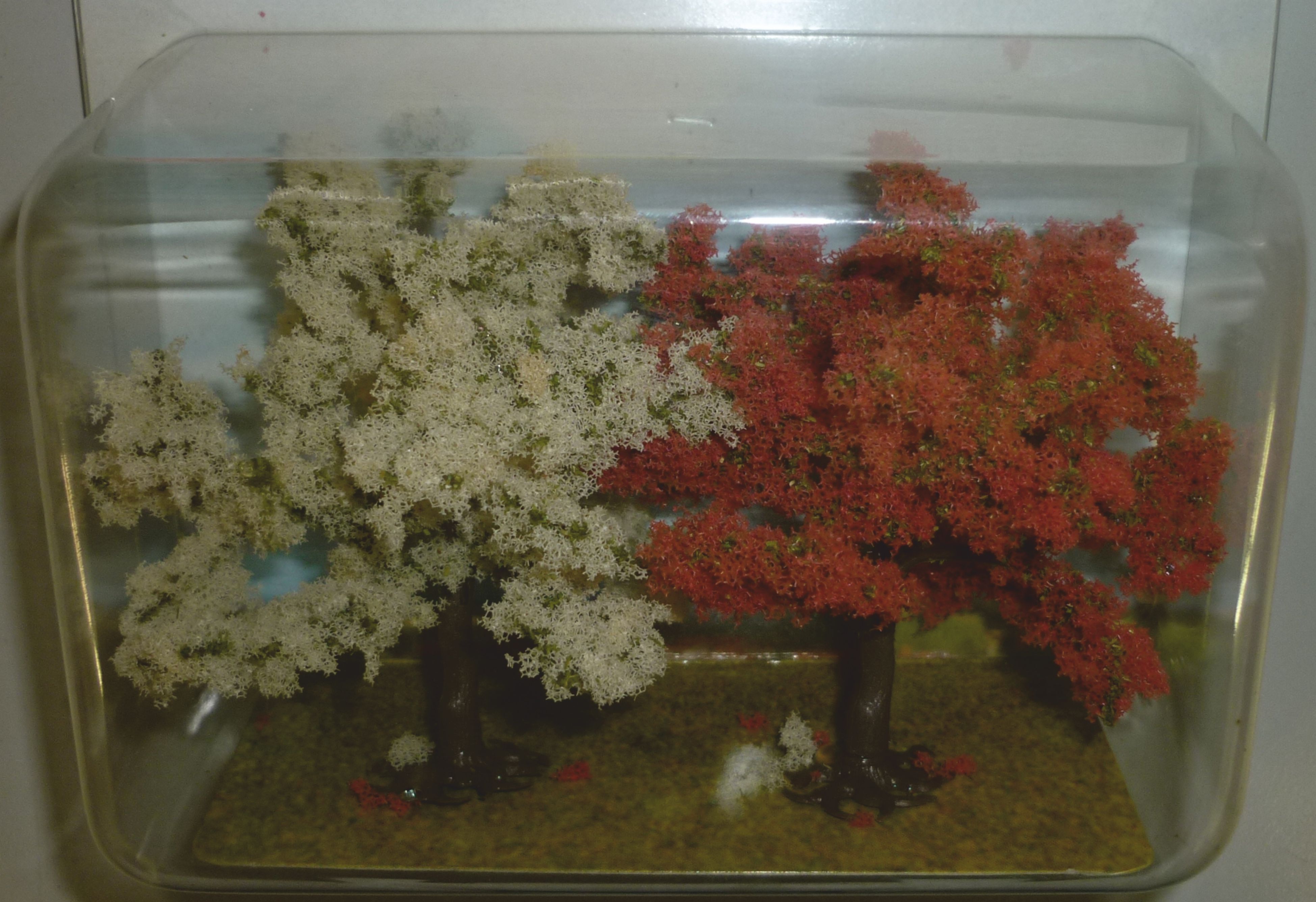 Blütenbäume Höhe ca. 80 mm 2 Stück im Set Kunststoffbausatz im Maßstab 1:87 Spur HO 14+ Modellbauartikel. Kein Spielzeug
