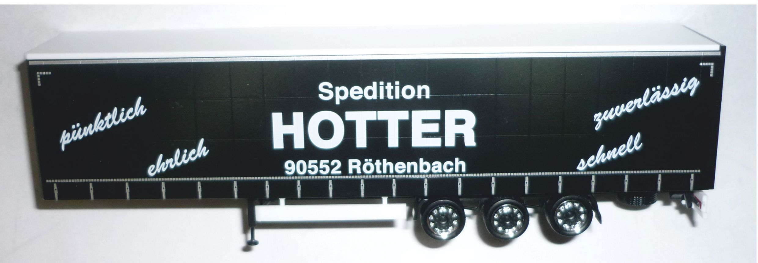 aus Herpa 309707 3-achs Schiebeplanen-Soloauflieger "Spedition Hotter" 1:87 Spur H0
