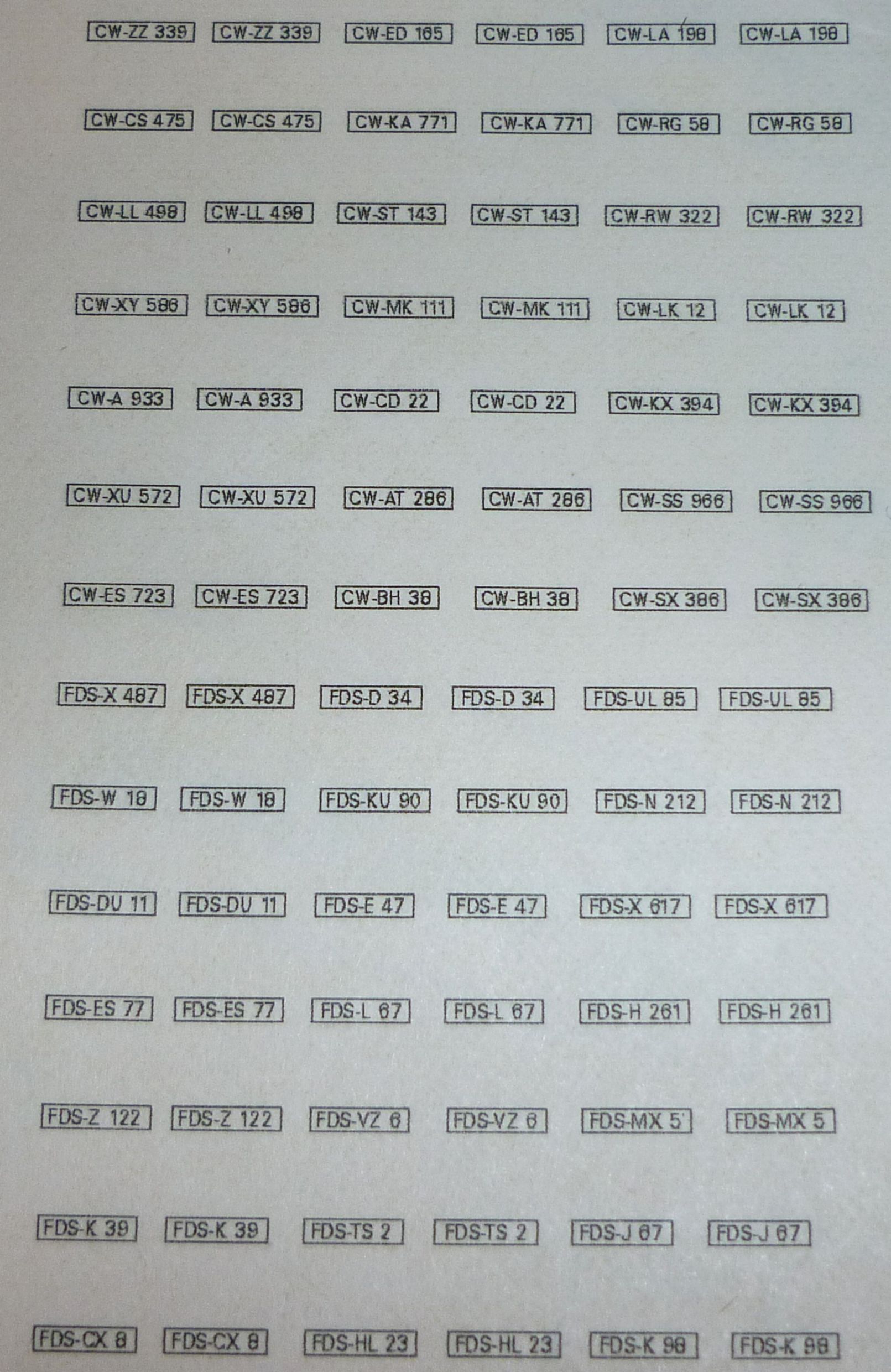 Decalsatz KFZ-Kennzeichen Bundesrepublik Deutschland Landkreis Calw + Freudenstadt 1:87