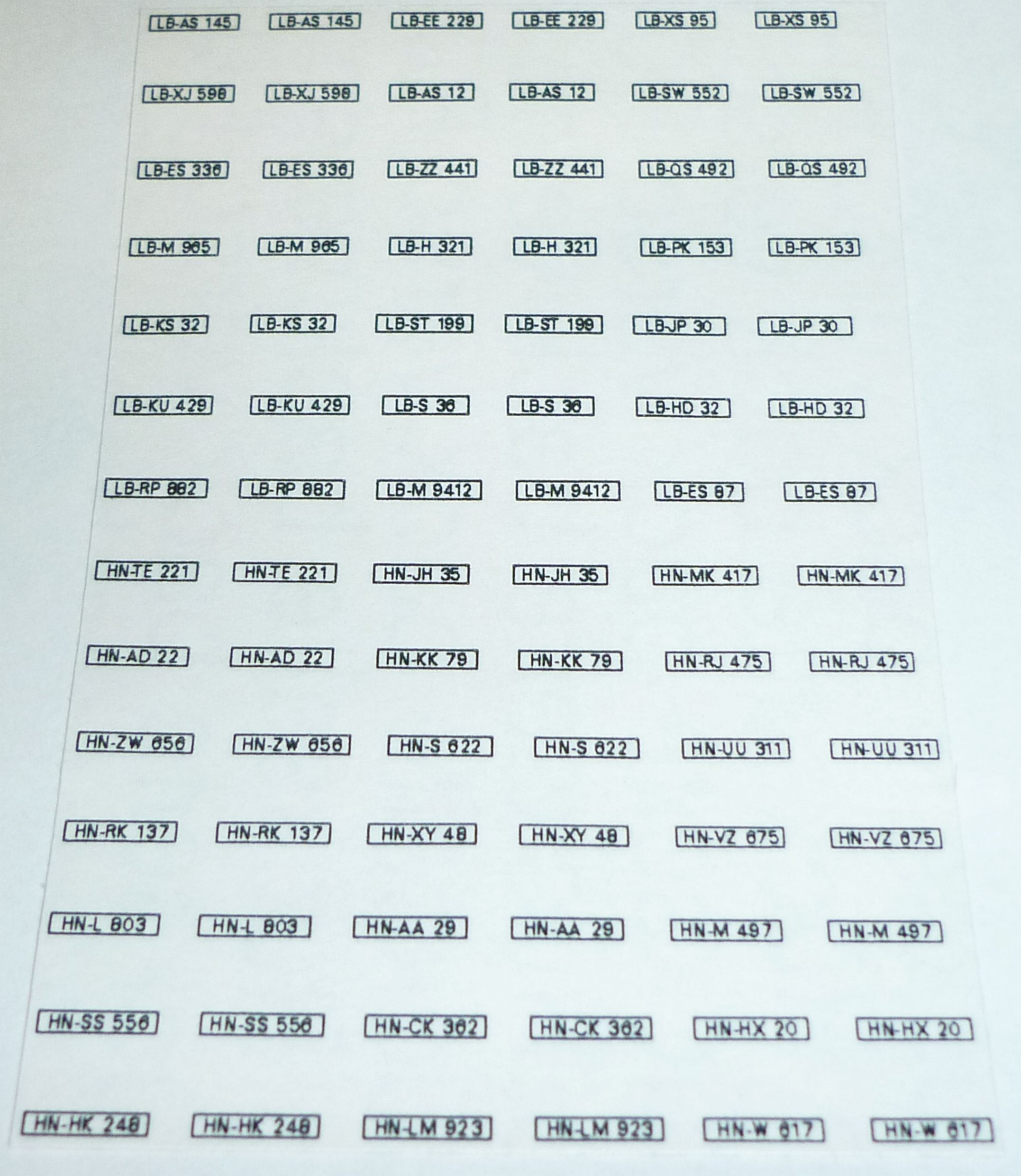 Decalsatz KFZ-Kennzeichen Bundesrepublik Deutschland Landkreis Ludwigsburg + Heilbronn 1:87 Spur H0