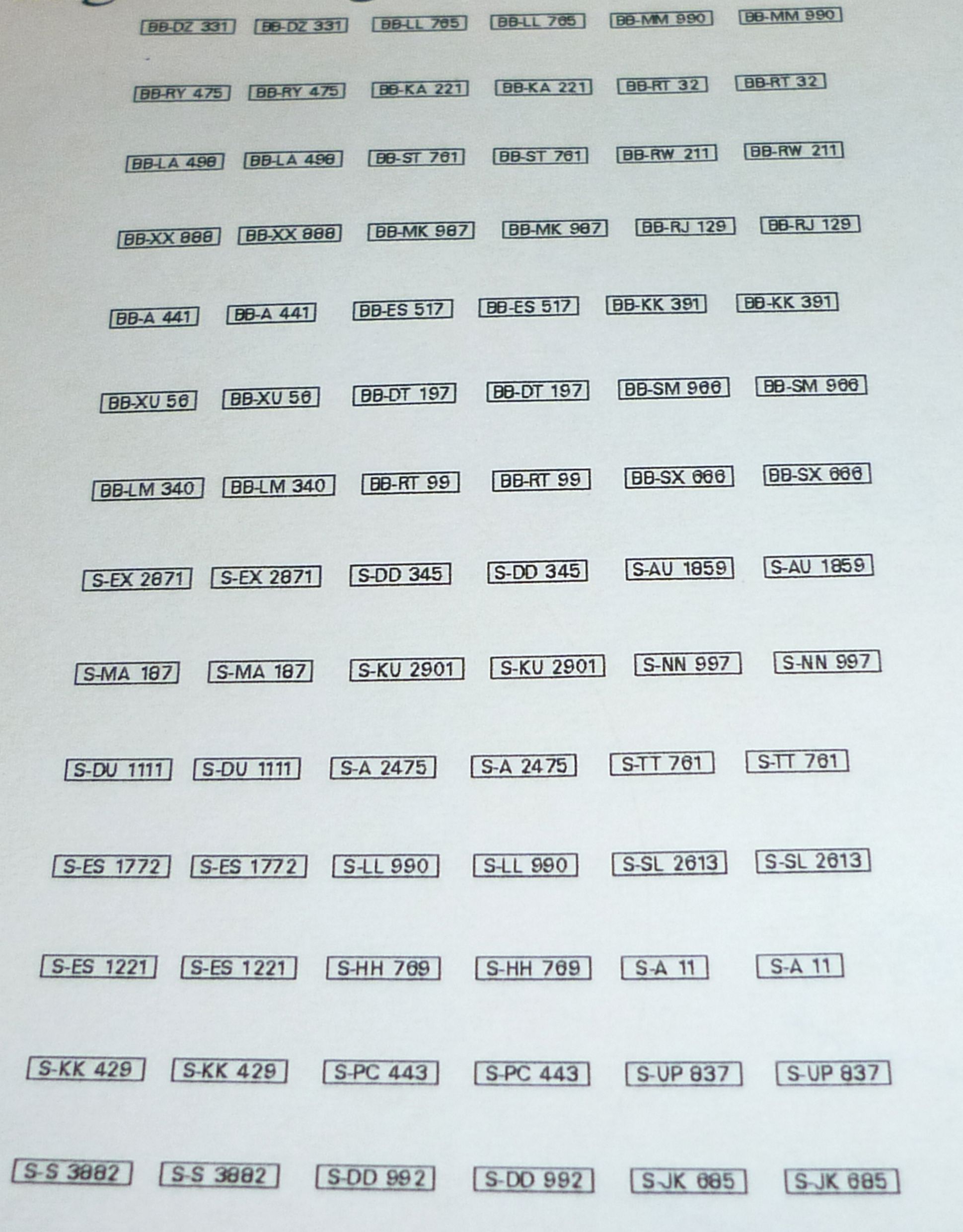 Decalsatz KFZ-Kennzeichen Bundesrepublik Deutschland Landkreis Stuttgart + Böblingen 1:87 Spur H0