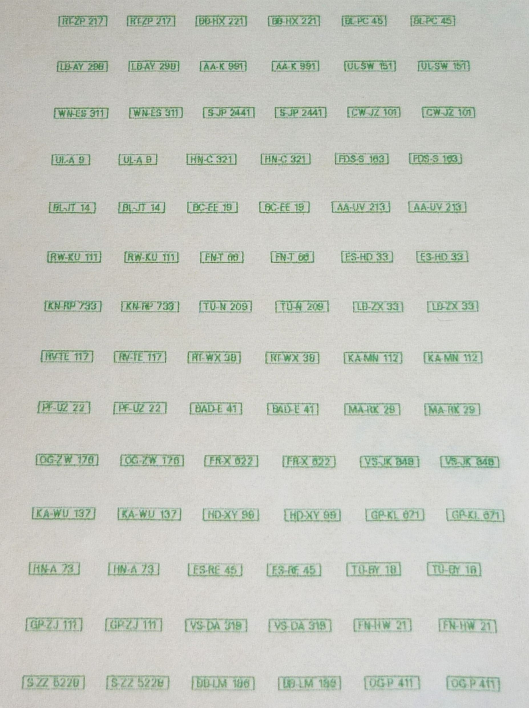 Decalsatz KFZ-Kennzeichen Bundesrepublik Deutschland landwirtschaftliche Kennzeichen Baden-Württemberg 1:87 Spur H0